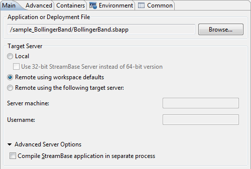 Any remote server designation here is ignored when making an executable bundle with the sbbundle command, or with the StreamBase Export dialog described on Application Bundling.