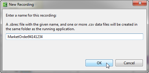 The recording begins once StreamBase detects that data has been enqueued onto one of the input streams. By default, each recording is named
