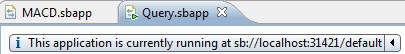 In previous releases, Studio shows a text string at the top of the EventFlow canvas to distinguish which application was running. The same information is now shown in an information bar, which can be collapsed to an icon by clicking the arrow on the right side. Click the icon's arrow to restore the information bar.