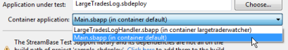 Container application This field only appears when you specify a deployment file in the Application under test field. This field shows a drop-down list of the modules specified in the deployment file. Select the container and module that you want to create the test for.