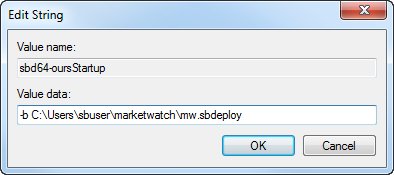 Double-click the newly added startup key. In the resulting dialog, add the full path to the StreamBase deployment file that describes the StreamBase application you want to run: