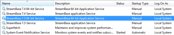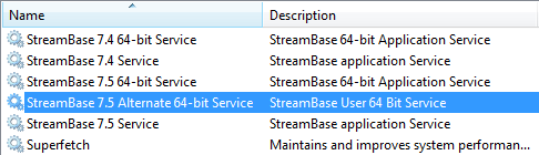 sbd64-ours installed with display name "StreamBase 7.5 Alternate 64-bit Service"Note