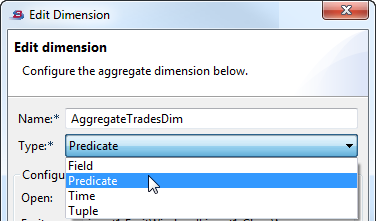 Open the Edit Dimension dialog in one of the following ways. In the Properties view for an Aggregate operator, in the Dimensions tab: