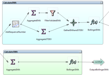 You can gather collections of components on the EventFlow canvas, drawing a box with a colored background around the selected components, and adding a Group title. You can collapse the contents of a Group to a single icon on the canvas. Groups are a visual tool that can help you edit more efficiently, but they do not affect the logic of your application.