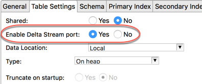 In the Table Settings tab, select Yes for the Enable Delta Stream Port control.