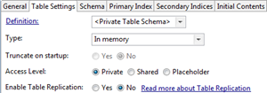 On the Table Settings tab, the Access Level label and the button were removed. All tables are now either shared or not.