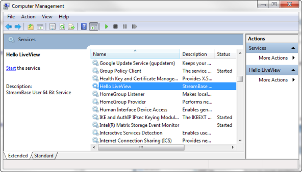A Windows service is an executable that can be set to run automatically when Windows is booted, and to remain running as a background process. This example creates a service for running the Hello LiveView sample project.