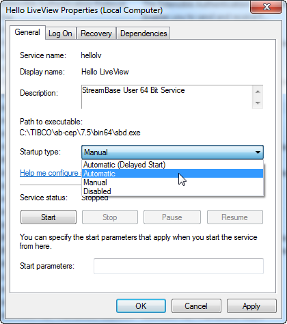 In the Startup type drop-down list, select Automatic.