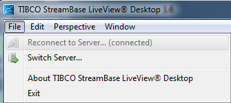 If your live data views are not updating, there are two ways to tell if you are still connected to LiveView Server. One is to look in LiveView Desktop's lower right corner, which reports either or Not Connected. The second is to open the menu; if is dimmed, you are still connected.
