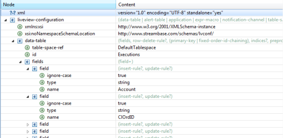 The text-based XML configuration file editor is a validating XML editor that is aware of the schema that defines the XML syntax of LiveView configuration files.