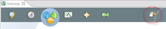 If you currently have one of the Welcome pages open in Studio, click the Workbench icon (circled in red) to close the Welcome page and open the SB Authoring Perspective.