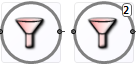 For operators that have a user-controlled number of ports (including Split, Union, Filter, Gather, and Pattern), you can drag an arc to or from a hover port that appears in gray in the bottom right corner while the mouse hovers over the operator. The hover port for a Filter operator is circled in red in the following illustration: