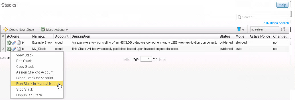 Run Stack In Manual Mode in the Actions drop-down list as shown in Running a Stack figure.