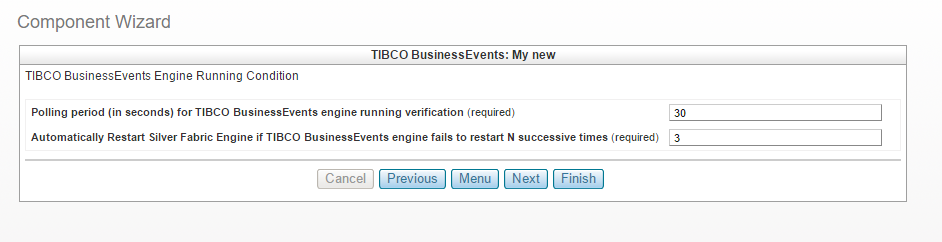 Polling Period (in seconds) for TIBCO BusinessEvents Engine Running Condition (required)