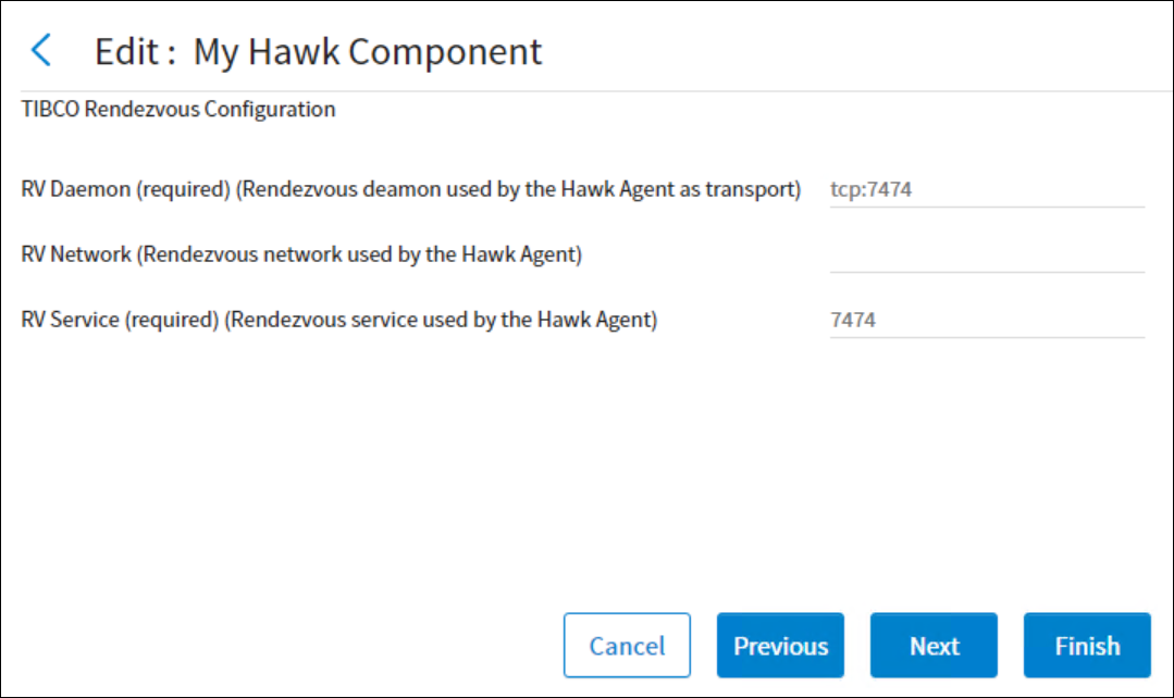 Set the TCP port to configure Hawk to use TIBCO Rendezvous® daemon as a message transport mechanism between the Hawk Agent and HMA.