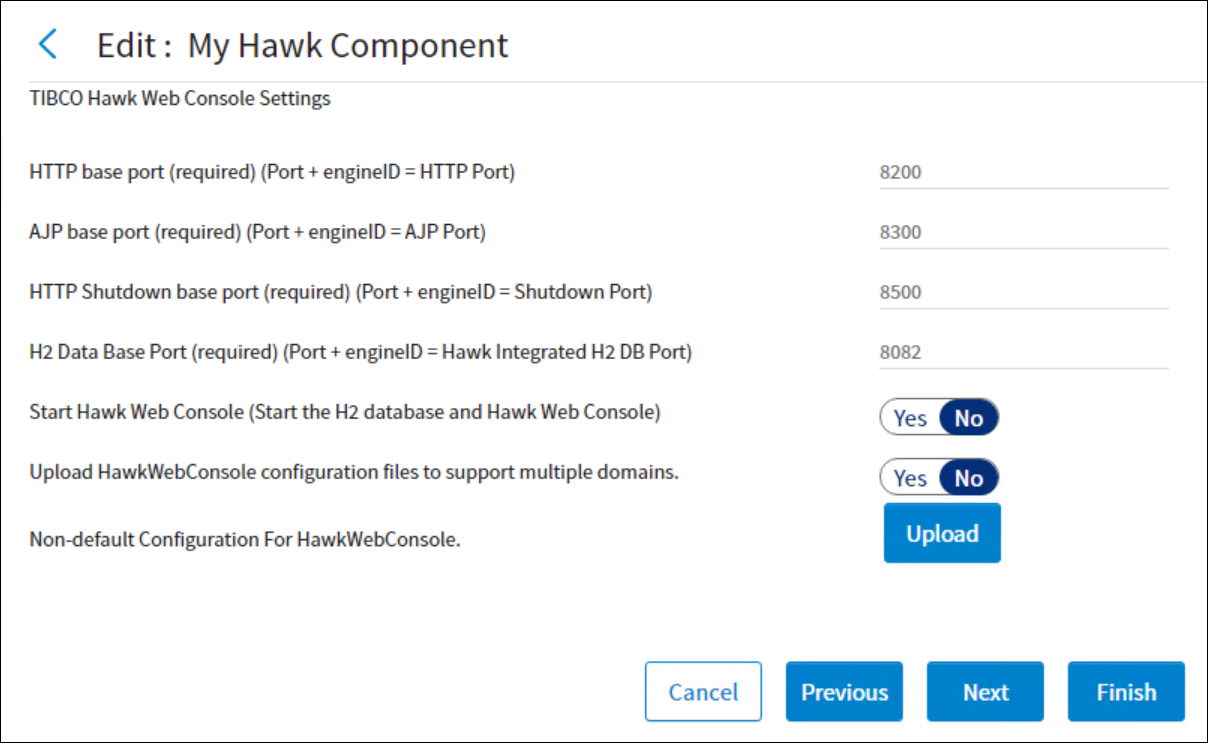 Select Yes to upload HawkWebConsole configuration files that support multiple domains. This option is