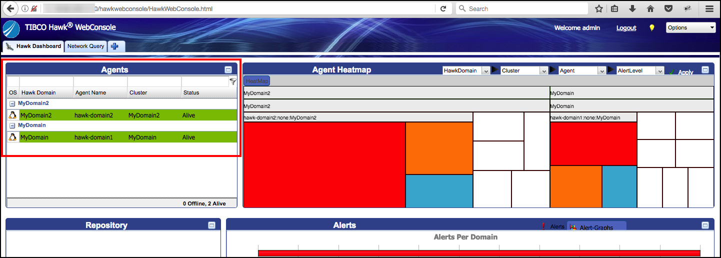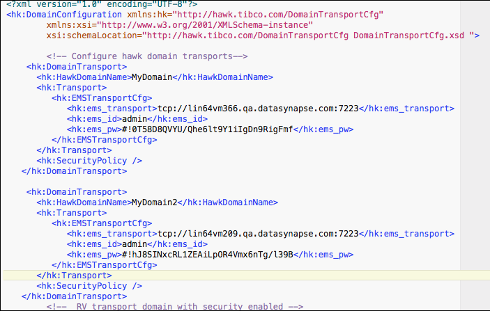 After you provide the DomainTransportCfg.xml file, HawkWebConsole displays the information of all the domains.