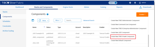 - By using the TIBCO Silver® Fabric Administration tool, select Stacks > Components.