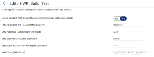 Hawk Agent uses an EMS Server as a means to communicate with its components. It is likely that a server might be down sometimes and it would be difficult to maintain communication with the components. To prevent such a break down in the services, you can use the fault tolerance mechanism. With this mechanism, you can configure a primary and a secondary EMS Server. When the primary server is unavailable, the secondary server takes over and the process flow is maintained. When the EMS FT url is provided, the EMS hostname and port are picked up from the url. Format of the url is as follows: