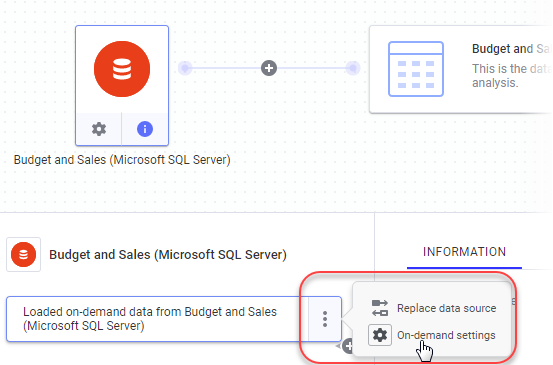 You can edit the on-demand settings from the source view of the Data canvas, including the option to enable on-demand loading for a data source that previously was not loaded on demand: