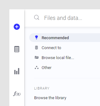 File data is any type of data opened from a file. To open local files, you use the Browse local file option in the Files and data flyout.