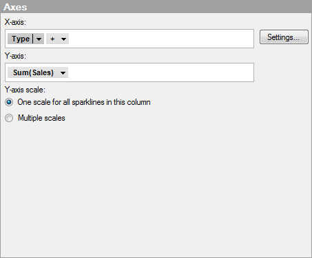 Use this option to show the Y-axis values for all sparklines using different scales. For example, use it if the data for several categories are of very different magnitudes, and you are interested in seeing the trends for each category rather than how the curves behave relative to each other. |