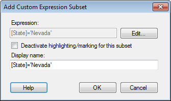 Opens the Custom Expression for Subset dialog where you can define a boolean expression to specify the contents of the subset. |
