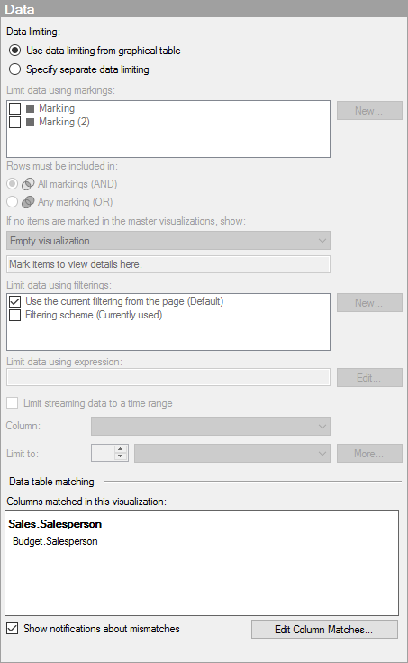 Use this option to inherit the data limiting settings from the graphical table. |