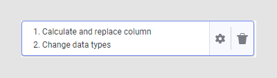 In this example, data has been loaded from a text file. Then, two transformations were inserted: first a "Calculate and replace column"-operation and then a "Change data types"-operation.