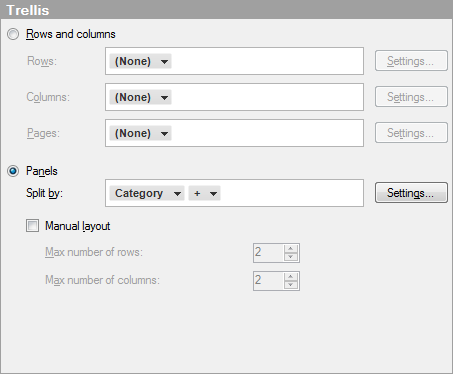 A row with trellis panels will be created for each value in the selected column or hierarchy.