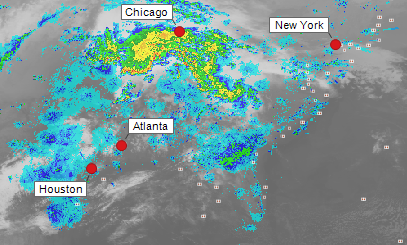 Other types of reference backgrounds are WMS layers. WMS layers are retrieved from Web Map Service, a web standard for accessing geo-referenced map images from different Geographic Information System databases (GIS) including ESRI ArcGIS and multiple public WMS servers on the Internet. Below, the background WMS layer displays weather observations.
