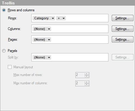 A row with trellis panels will be created for each value in the selected column or hierarchy. |