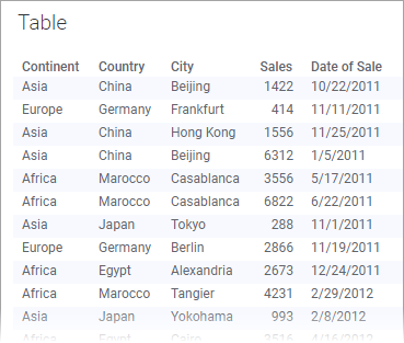The table in TIBCO Spotfire works much like any other table you might be familiar with. It presents the data as a table of rows and columns, and is used to see details and compare values.