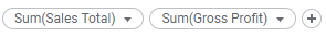 If you are writing complex custom expressions involving more than one column you may want to change the display names on an axis by modifying the expression behind the axis directly using the "AS" keyword. Using a simple example, you may have a line chart where the Y-axis shows one line for sum of sales, and another line for sum of gross profit. The column selectors would then appear as seen below: