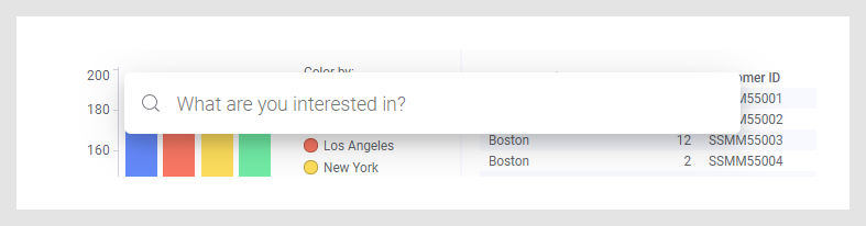 In the analysis below, there are three pages (Furniture sales, Garden sales, and Toys sales), and a data column named Toys. If you enter Toys as search criterion, you get visualizations based on the Toys column recommended to you, which you can add to the analysis through a simple click.