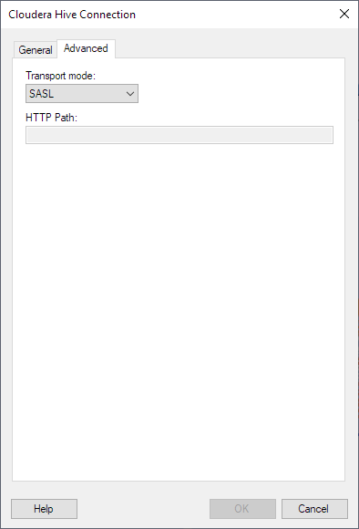 [Only applicable when you select transport mode HTTP.] Specify the partial URL that corresponds to the Hive server you are connecting to. The partial URL is appended to the host and port that you specified in the Server field. Together, they form the full address. As an example, say you want to connect to the address https://example.com:10002/gateway/sandbox/hive/version. Then for Server, enter https://example.com:10002. And for HTTP Path, enter /gateway/sandbox/hive/version. |