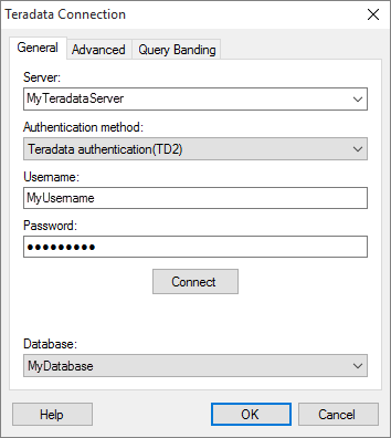 View Getting Started with Connectors for general information about accessing connectors in Spotfire. To learn more about Teradata, refer to the official Teradata documentation.