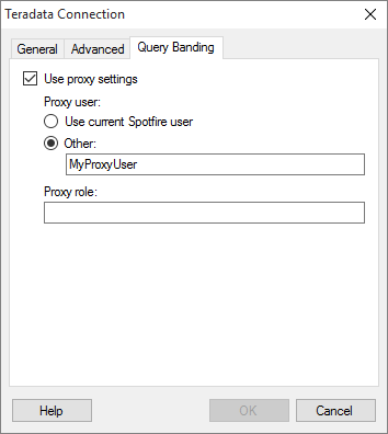 [This query band is only included if you select Use proxy settings.] The specified proxy role. |