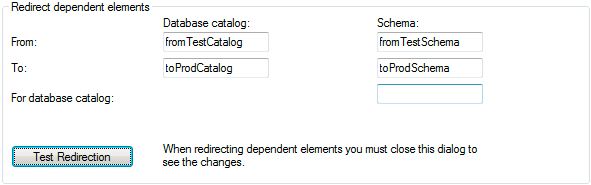 Specify the database catalog you want to redirect the elements to. |