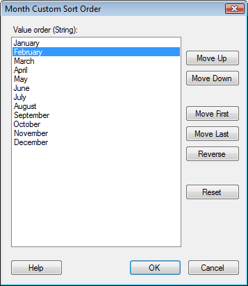 Lists the available values in the current sort order. Move values up and down in the list to rearrange the sort order. |