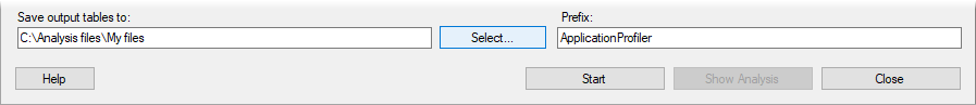 Before executing the Application Profiler, you need to specify where to save the output data tables and give a title prefix to the output data tables.