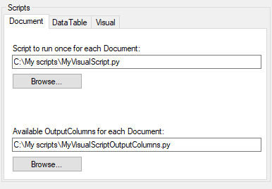 Supports custom scripts that can be executed once for each document, data table and visual. |
