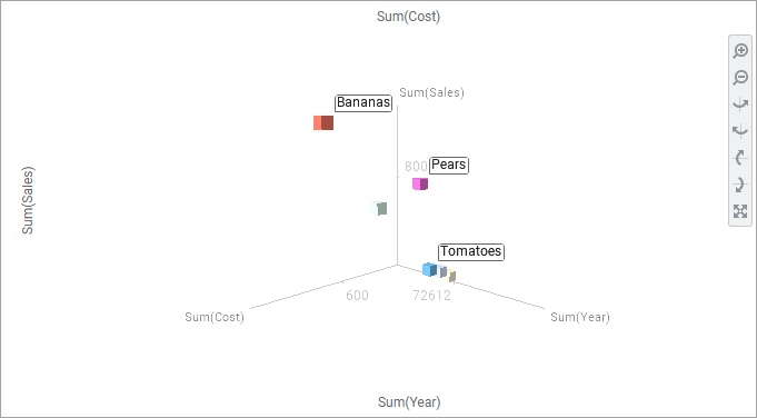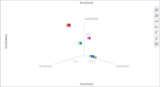You can change how the 3D scatter plot is viewed by zooming in and out as well as rotating it by using the navigation controls located in the top right part of the visualization.