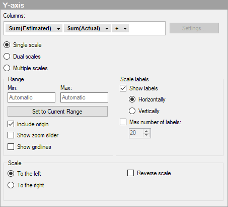 Opens the Scale Range dialog where you can specify the range of the selected scale, and also determine whether to include the origin (0, 0).