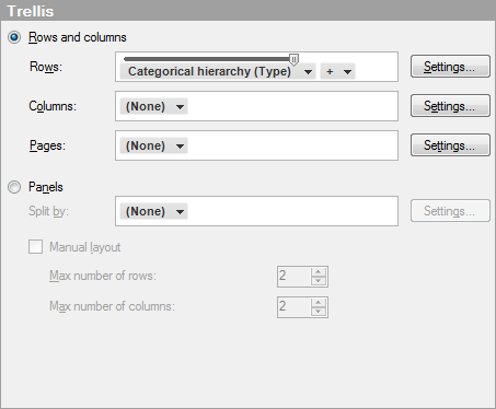 A row with trellis panels will be created for each value in the selected column or hierarchy. |