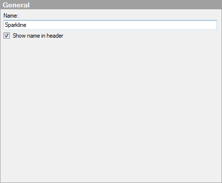The name of the sparkline. If the sparkline is included in a graphical table, then this name is the column header which can be shown or hidden using the check box below. Otherwise, the name is simply used to identify this particular sparkline column on the Axes page of the graphical table or in edit mode in a text area. |