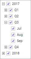 Besides, a fixed hierarchy is associated with a hierarchy filter, which consists of an expandable tree view where the categories at the different levels are represented by check boxes. To set up a fixed hierarchy, see Creating a Fixed Hierarchy.