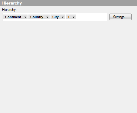 Specifies which columns to use in the treemap hierarchy. The order specified here determines the order of the levels in the treemap hierarchy. For example, Continent - Country - City, where Continent will be the highest level, and City the lowest. Tip: Instead of adding separate columns to set up a treemap hierarchy, you can use a previously defined hierarchy. To learn more about creating hierarchies, see How to Edit Column Properties and Creating a Hierarchy Filter. |
