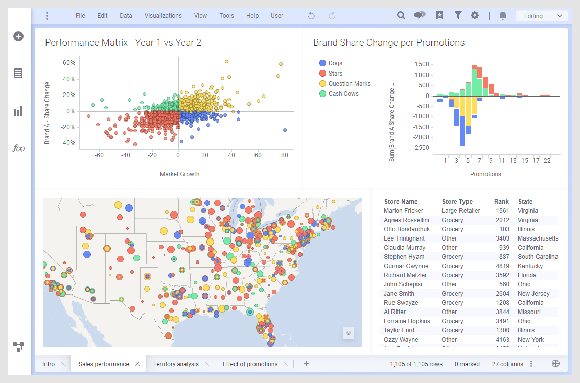 Your findings can be shared with others in different ways, and you have a lot of options to customize the visual appearance of an analysis.