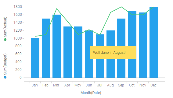 添加批注 批注是可添加到图表之上的文本框。可以在图表上添加批注以用于各种演示目的,例如解释图表中显示的内容或通知有趣的发现。批注还可以用于添加说明或问题。 关于此任务示例如下所示。 批注是图表的一部分。这意味着如果将整个图表移动到分析中的其他位置或复制该图表,则添加的任何批注都会包含在内。如果导出图表,则可以指定是否包含批注。 可以更改批注的位置。只需单击批注并将其拖动到图表中,或者拖动到页面中的其他图表。 可以隐藏批注。可以完全隐藏批注,也可以将批注最小化为图标。 过程 在菜单栏上,选择“图表” > “新建批注”。 活动图表中将打开一个带有工具栏的文本框。 在框中键入文本。 在添加文本的过程中,文本框会纵向扩展。提示: 如果要更改宽度,请将光标放置在该框的右边缘上。当光标发生变化时,单击并拖动边缘即可调整该框的大小。 在工具栏中,单击着色的方形以更改背景颜色和文本颜色。 单击或以更改字体大小。 批注的大小将自动调整以适应新的字体大小。 单击批注外的区域可退出输入模式。 将添加文本批注。注: 如果希望对批注进行更改,只需单击它即可进入输入模式。 涵盖的主题:最小化批注如果批注覆盖了图表中的重要部分,您可以将其最小化。批注的位置将会以一个小图标表示。 隐藏批注可在图表中显示和隐藏批注。 删除批注可以逐一删除批注。 使用批注还是对话?在分析中,您可以通过不同的方式进行通信。您可以使用批注为图表添加注释,也可以向对话中添加注释以进行交流。下文描述了何时应使用批注和应使用对话的情况。 主页添加批注